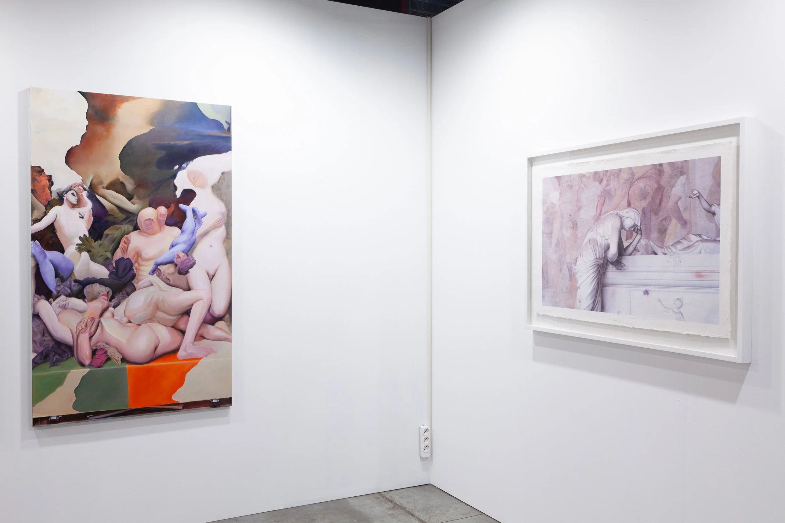 Fake Reality: the project brings together the post-photographic practices of Dune Varela and Pietro Catarinella, two artists united by the desire to go beyond the boundaries of the image. Dune Varela transfers the pigments of his photography onto Carrara marble, creating sculptures that evoke archaeological ruins. Pietro Catarinella fuses artificial intelligence and painting, building interior landscapes full of desire, disorientation and metamorphosis.