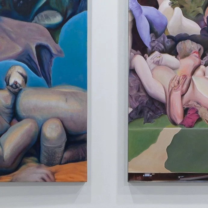 Post-Human Hallucination / Temporary Triptych, inkjet print and oil on canvas, each work 167 x 100 cm, 2024-2025